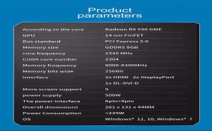1. [High Performance] RX590 8GB GDDR5 256bit graphics card with powerful image processing, 2304 units cores, 1460MHz core frequency and 8000MHz video memory frequency.